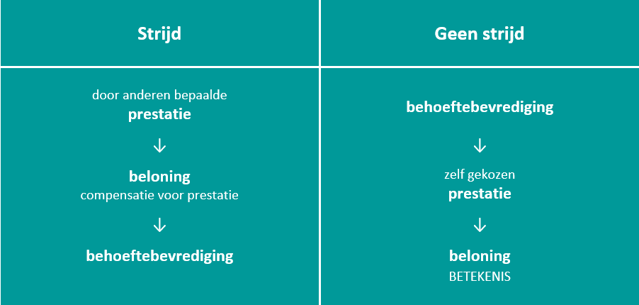 En hoe kom je aan geld? Ook door er iets tegenover te stellen. Door aan de eisen of verwachtingen van anderen te voldoen. De eisen van je baas, de verwachtingen van je klanten. Je wordt geacht anderen tevreden te stellen. Je moet presteren volgens de maatstaven van anderen. Of je moet een door de maatschappij goedgekeurde reden hebben om dat niet te hoeven doen (bijvoorbeeld wanneer je recht hebt op een uitkering bij ziekte).