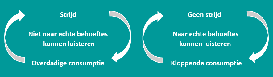 We kampen met de gevolgen van de heersende overtuiging dat we onvermijdelijk in strijd met elkaar zijn en dat we in deze strijd moeten zien te overleven, desnoods ten koste van anderen. Dit terwijl we in een wereld leven waar overconsumptie en verspilling het probleem zijn, niet schaarste.